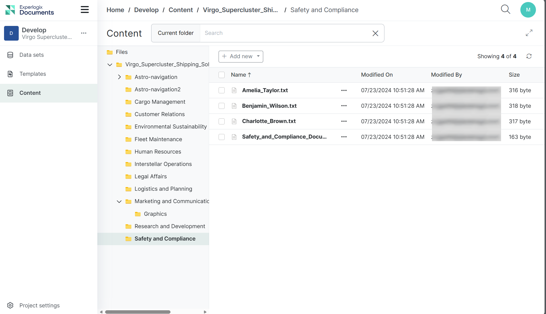Navigate to the project dashboard and select Content from the menu on the left side.