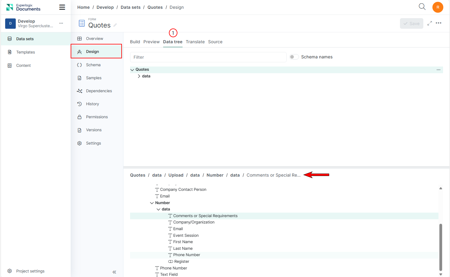 The Data Sets Design Tab enables users to craft or import Data Sets schema. This document will cover the different views available for JSON, XML, and Form Data Sets, and provide step-by-step procedures for importing schemas, generating schemas from data, editing schemas, and adding translations to form data sets. Additionally, it covers how to preview form translations and navigate the Data Set Tree View, ensuring users can efficiently manage and visualize their data sets.