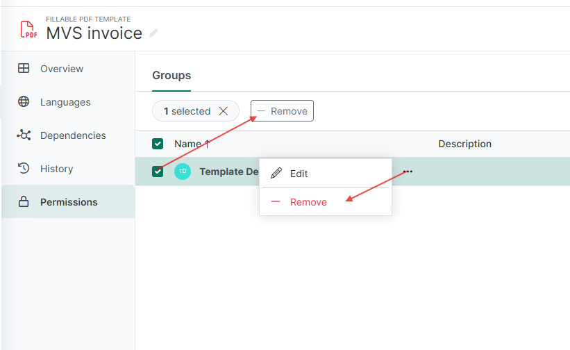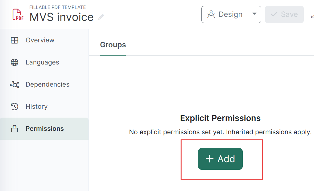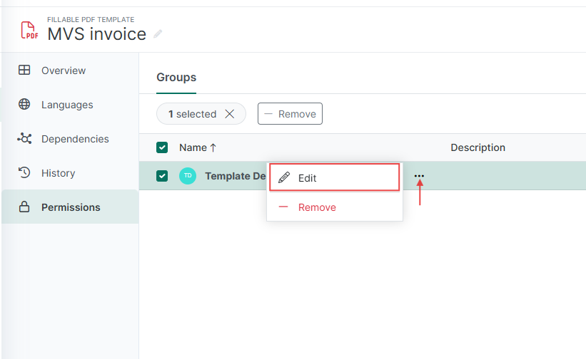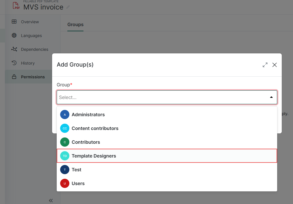 To do this, I create a user group in Project Settings, add the required users, then go to the 'MVS invoice' template → Permissions, and assign the group.