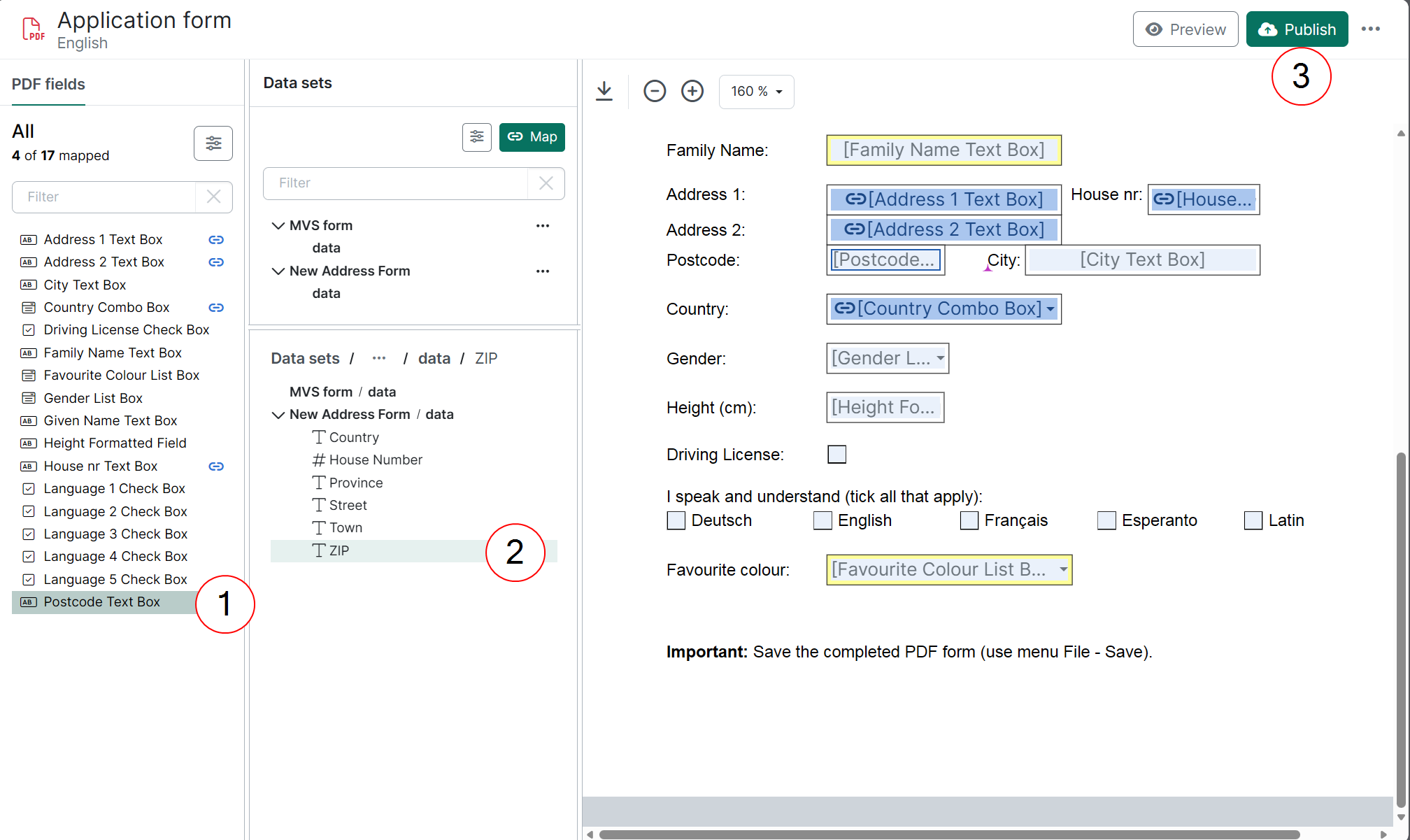 | 2. | Edit mappings: Update PDF fields mappings by linking them to different data set fields. |