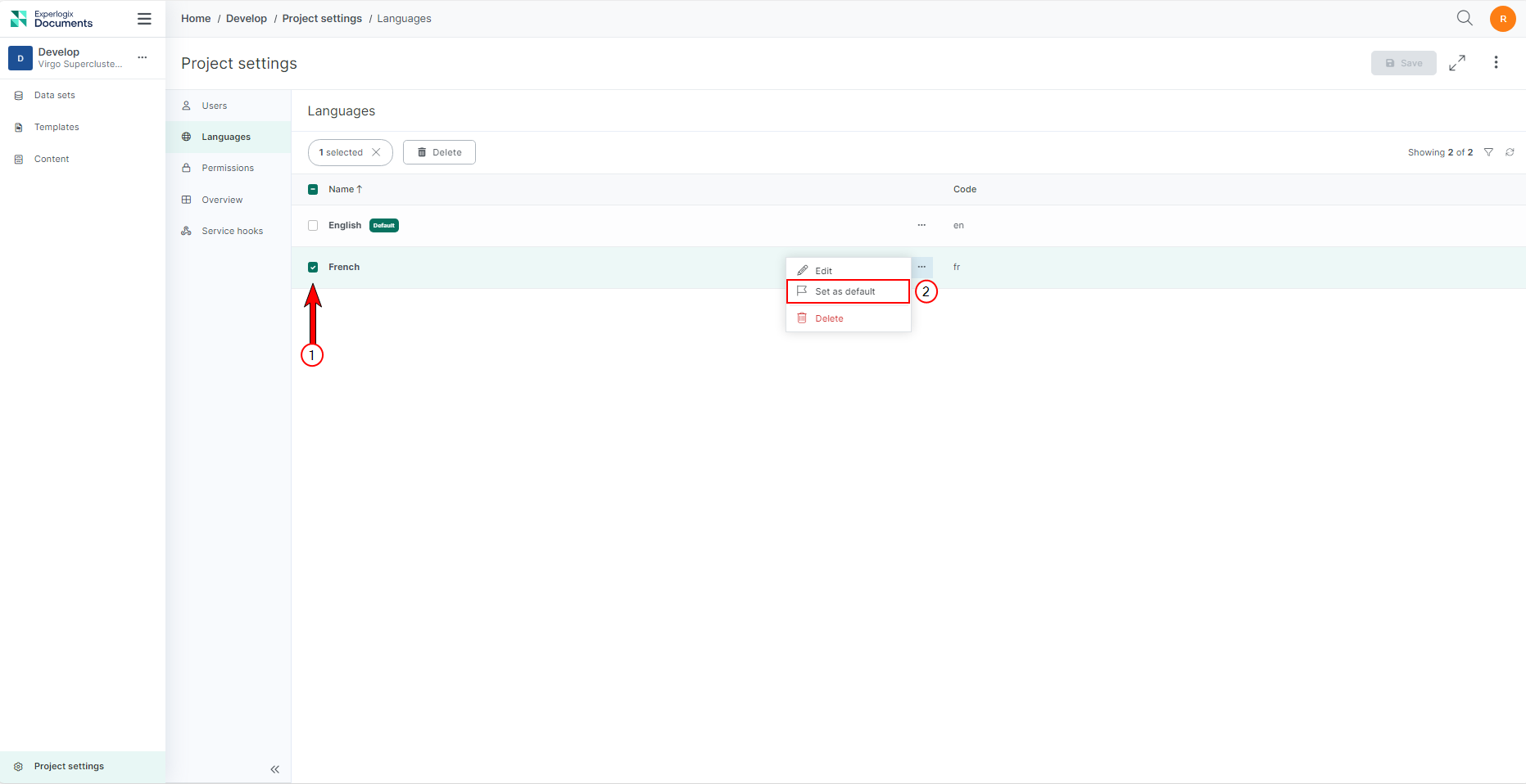 | 1. | In the Languages list view, select the language to which you want to set the default. |