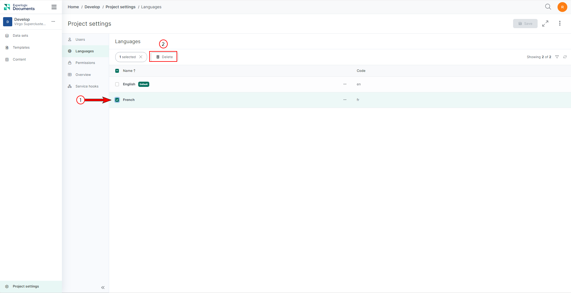 | 1. | In the Languages list view, select the language which you want to delete. |