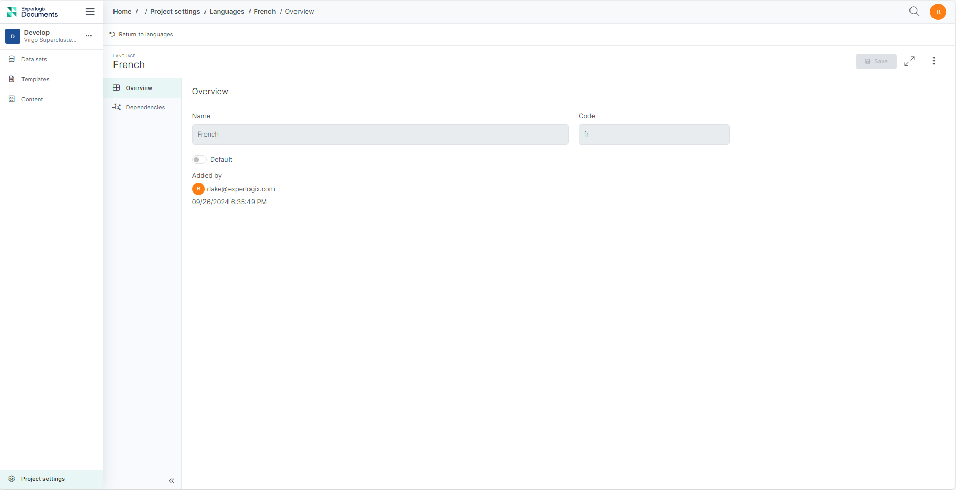 Experlogix Documents enable you to create and manage items in multiple languages. By managing languages effectively, you can create and maintain language-specific variants of your templates, ensuring that all users interact with your content in their preferred language. This document will guide you through navigating the Languages user interface at the project level and performing various operations.