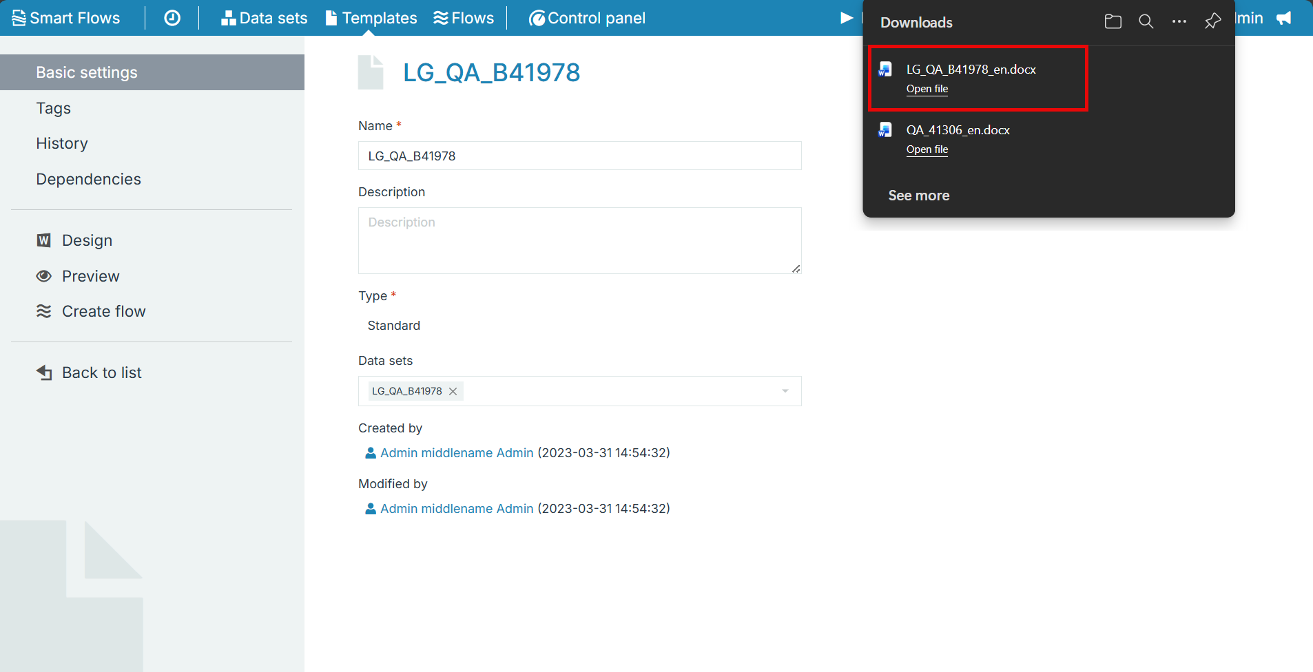 In the List view, select the template and add a Docusign data set. |