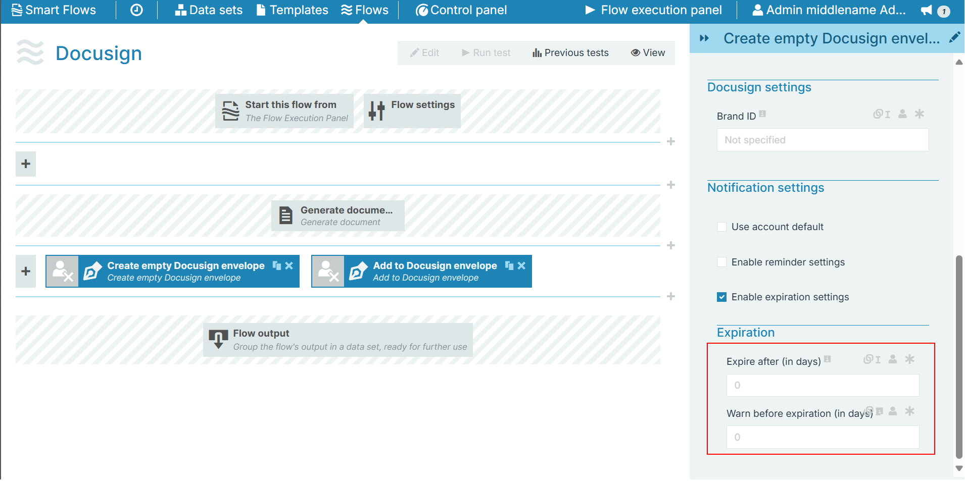 In case if these fields are left blank, then the flow considers the values mentioned in the respective Docusign connector server.