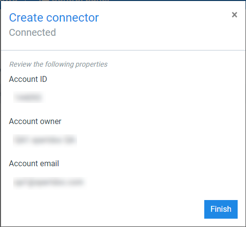 Select the Finish button to conclude the creation of your PrintNode connector. |