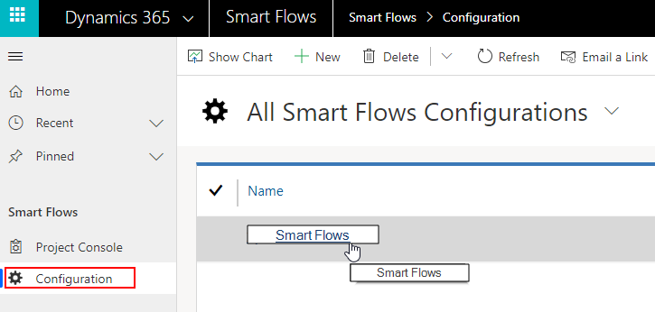 | 1. | In the Microsoft Dynamics 365 CE, navigate to Smart Flows. |
