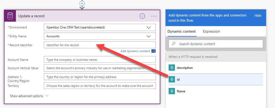In our example, the id comes from our JSON payload, and we'll use dynamic content to set it.