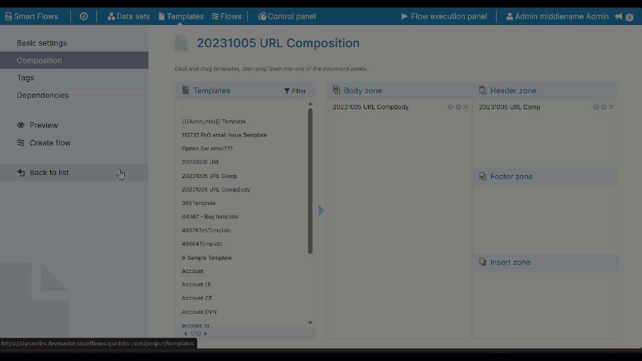 Drag and drop the templates from the List view into the preferred zone. You can add the same template to multiple zones or repeat it within a single zone. See Document Zones for more information.