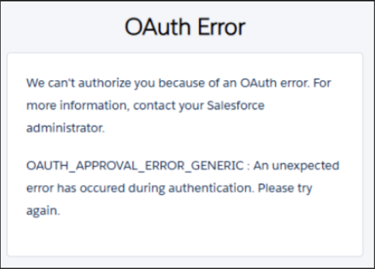 Problem: Some users encounter an 'OAuth error' when attempting log in to the Project Console using their Salesforce credentials. The error screenshot is shared below: