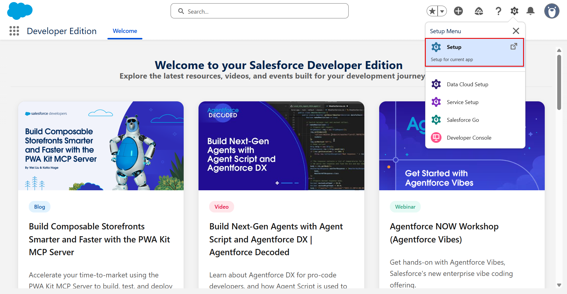 | 2. | Navigate to Setup (gear icon) > Setup. |