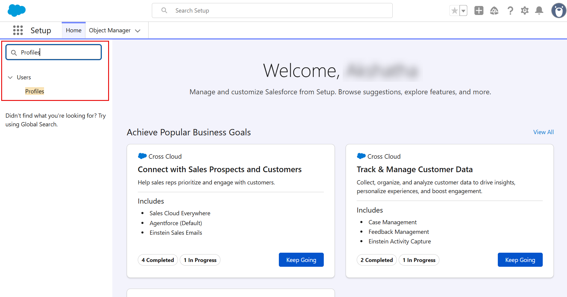 | 3. | In the Quick Find box, enter 'Profiles'. |